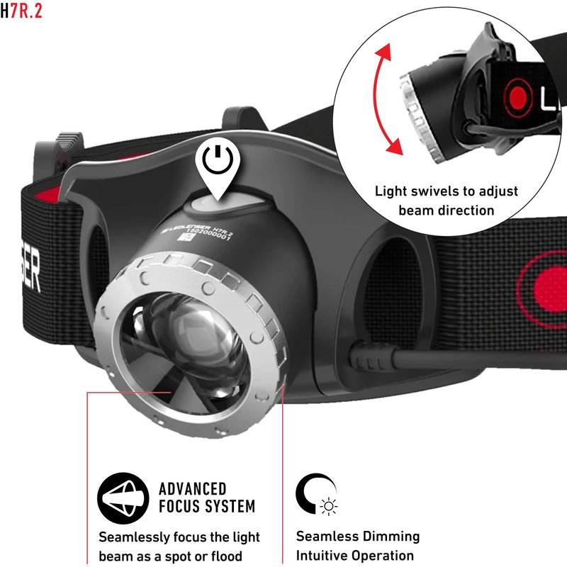 - SEE EVERYTHING, DO ANYTHING: With 20-300 lumens and a 160-525 foot range, the H7R.2 can navigate the garage or job site. And with Advanced Focus System, your Ledlenser gives you the brightest, most even light possible.