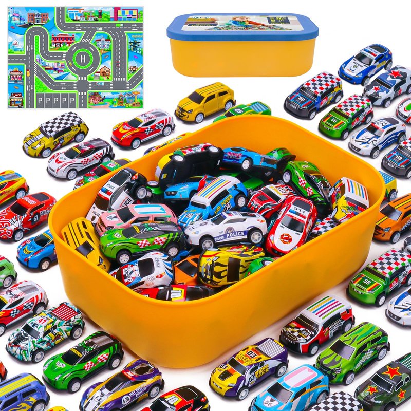 - 50 PIECE PULL BACK TOY CAR WITH STORAGE BOX, SUPER VALUE PACK --- Our ledorr toy car set include 50pcs pull back cars with different colors (randomly), bright colors and rich variety of shapes toy cars will bring your little ones a big surprise and endless fun. Party favor toys for kids, enough for a group of kids boys girls playing together. Must buy toddler toy car play set for car-loving kids.