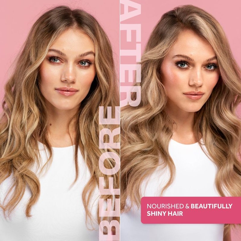 - How it works: Delivering luxurious moisturisation to soften, smooth and boost shine. For hair that feels and looks restored, repaired and frizz free.