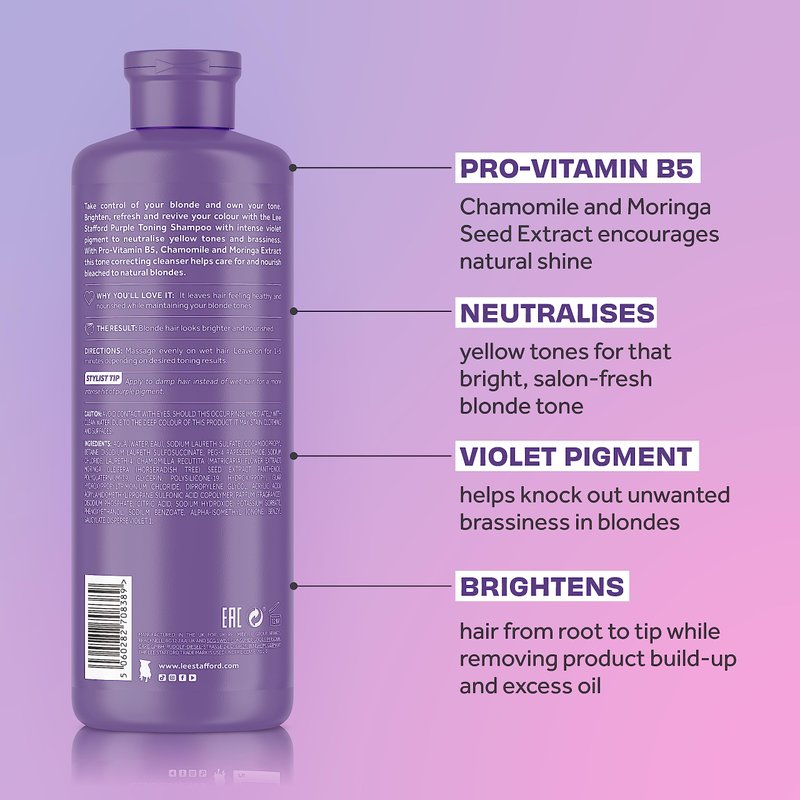 The Bleach Blondes Purple Toning Shampoo is our best purple shampoo, with our trademark Pro-Blonde Complex to moisturise hair cuticles while enhancing hair's natural shine.