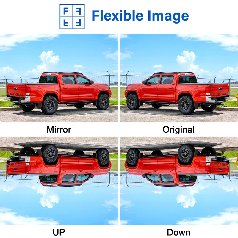 -Intelligent switch can on/off guide lines, switched mirrored/facing view makes the backup cameras can used for front facing camera.