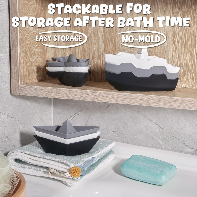 Leeleelon® Mold-Free Floating Boats Bath Toys for Toddlers 1-3, 3 Pack, No Hole Bath Toys for Babies 6-12 Months, Water Table Toys, Bath Toys for Kids Ages 1-3, Water Toys, Pool Toys, Beach Toys