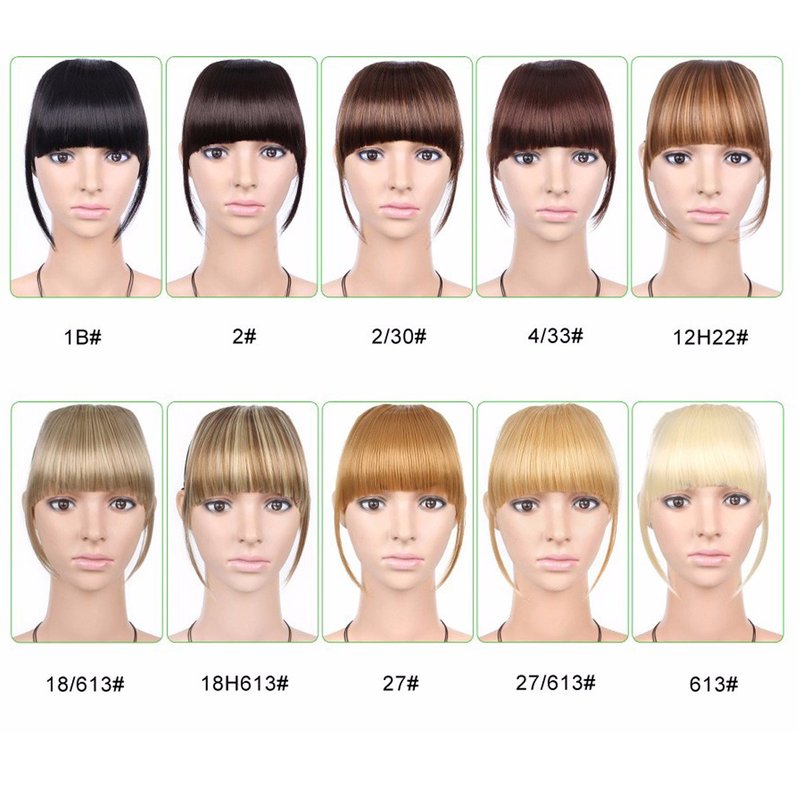 - Length/Color: Blonde Bangs Medium is about 6 inch, You Can Also Cut The Hair Bangs As You Like to Fit Your Face and Your Hairstyle.Clip in Bangs Blonde has 10 Color Available. Black, Blonde, Brown and so on. Weight: 25g, 1 piece / pag