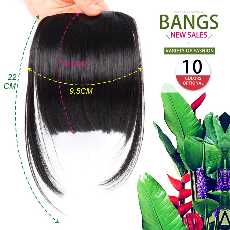 - Length/Color: Neat Bangs Medium is about 6 inch, You Can Also Cut The Hair Bangs As You Like to Fit Your Face and Your Hairstyle.Clip in Bangs Blonde has 10 Color Available. Black, Blonde, Brown and so on. Weight: 25g, 1 piece / pag