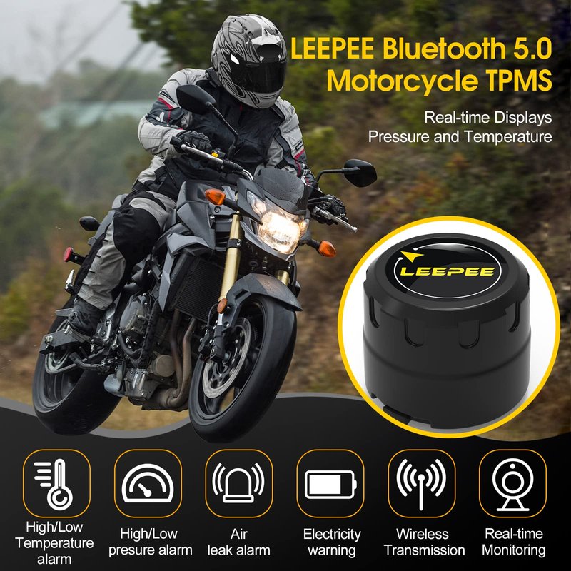 - New upgrade Designed for mobile phone connection--- The LEEPEE TPMS Bluetooth 5.0 provides you with a faster, more accurate and more stable APP wireless connection to monitor the condition of your motorcycle tires in real-time. Applicable to IOS and Android systems. (Bluetooth 4.0 or above).
