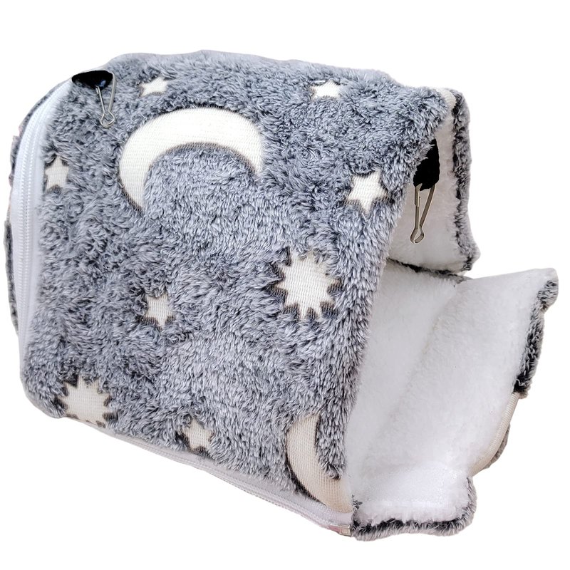 - Chinchilla Bed Design: Easy and portable guinea pig hideout to hang with the bilateral hooks. Half door design with flexible function, fence door can be flat or raised.【Luminous style】 Expose them to strong light for more than 30 minutes, and then put them in the dark, the stars and moon patterns will emit a soft and bright starry warm light!