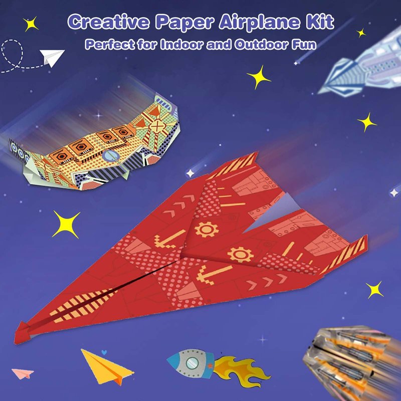 LEERYOUQU Kids Paper Airplane Kit, Creative Paper Airplane Book with 16 Classic Designs & 32 Planes Sheets, Origami Airplanes Kit for Kids Ages 8-12 +(New English Instructions)