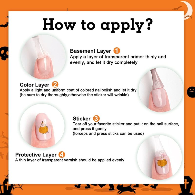 - 【Easy To Use】Halloween nail decals is self-adhesive, it can stick to the nails without glue, and it is very convenient for children to use, just choose the nail sticker pattern you like and stick it on the nails. It is worth mentioning that it does not peel off the nails when peeling off.