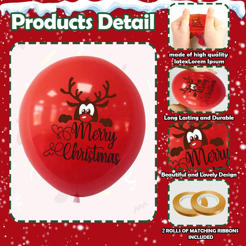 - Package Include: Come with 15pcs latex balloons (Includes 5pcs santa balloons + 5pcs deer balloons + 5pcs Xmas tree balloons + 1pcs green ribbon). Very easy and fast to assemble, just put some air or helium in it then tie with ribbon. Can be reusable.