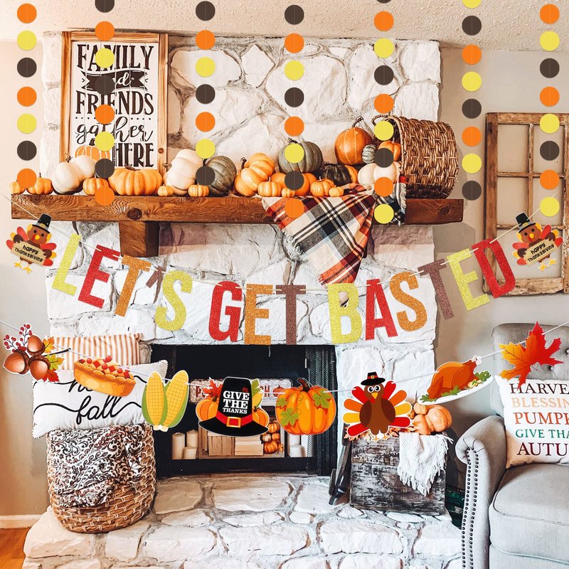- What you will get: 1Pcs glitter Let's Get Basted banner,1pcs Thanksgiving garland and 1pcs gold circle dots garland,full of Thanksgiving feeling.It is a must-have garland to celebrate your Thanksgiving party, brighten up your home party.