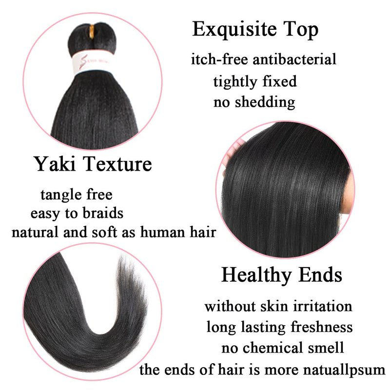 Multi-functional: Pre-stretched EZ Braiding Hair Extensions can make different styles of hairstyles, such as Box Braids, Senegal Twist, Butterfly Locs, Jungle Braids, Bohomian Crochet Braid, and can also be used directly