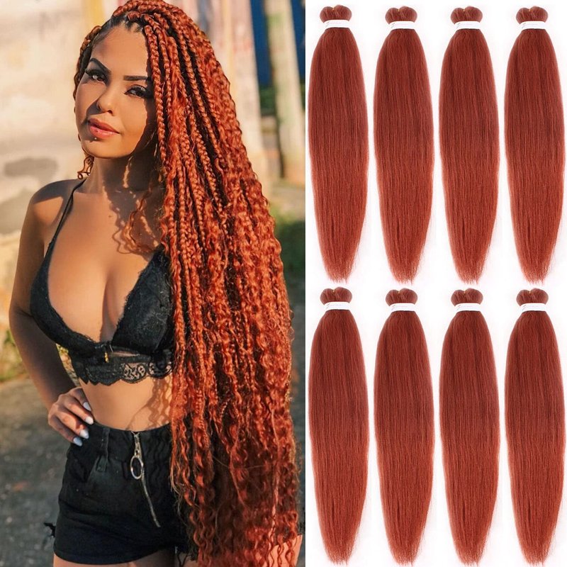 Leeven 30 Inch Ginger Braiding Hair Pre stretched Long Braiding Hair Ombre 8 Packs Professional Synthetic Hair Extension Yaki Texture Braiding Hair For Women(350#)