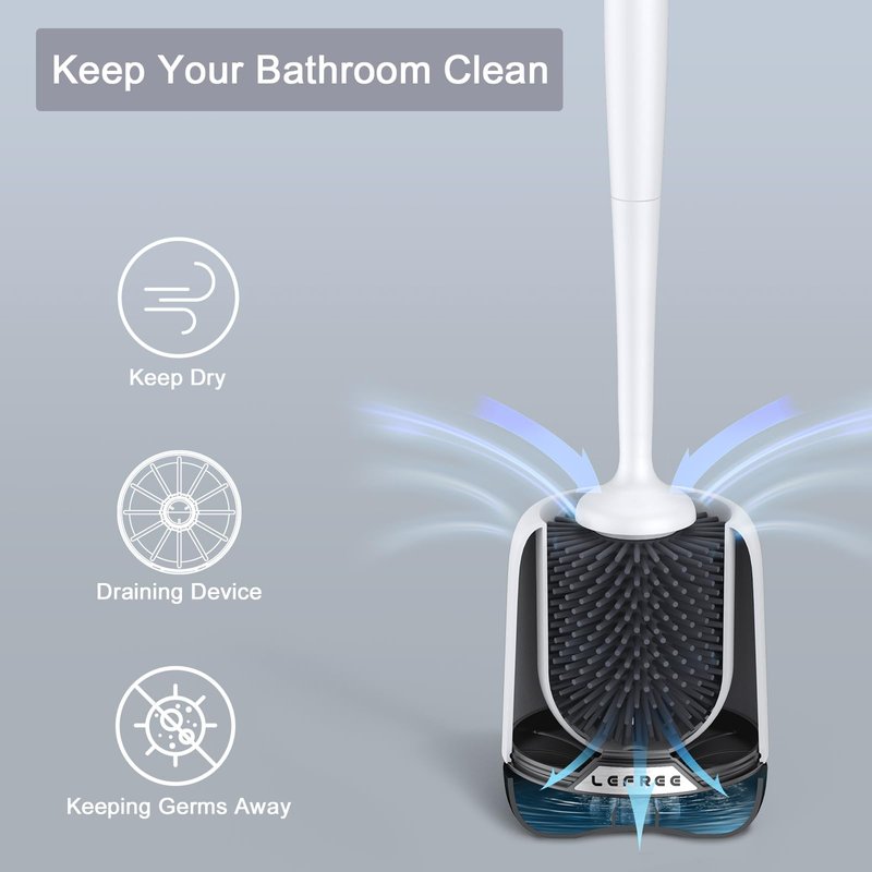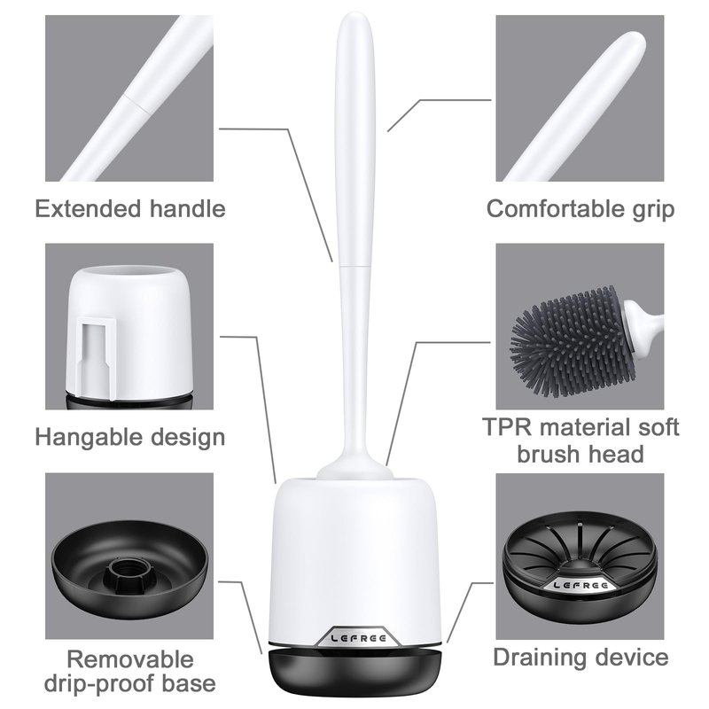 Why choose Lefree toilet brush? -1. New soft TPR silicone material, easy to clean the brush and won't leave scratch to the toilet glaze. -2. No-slippery handle design -3. Well-ventilated base design, keeping the brush dry. After-sale: If you have any question with toilet bowl cleaner brush Please contact us via: -1.Q&A -2.Amazon Message Center