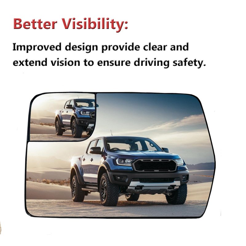 - 【Direct Replacement and Durable】: The quality of the back plate and f150 mirrors is top rated. Made of high quality ABS plastic and glass heated function. Direct replacement for a proper fit, meets or exceeds OEM standards, 100% tested before shipping.