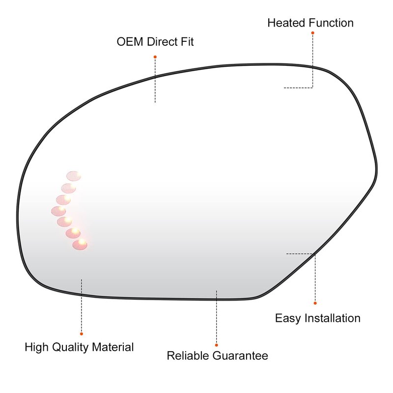 - 【Side Heated Mirror Glass】: This heated glass can melt snow or fog when driving in winter by heating. Provides clearer visibility when driving in snow or rain, greatly improving driving safety.