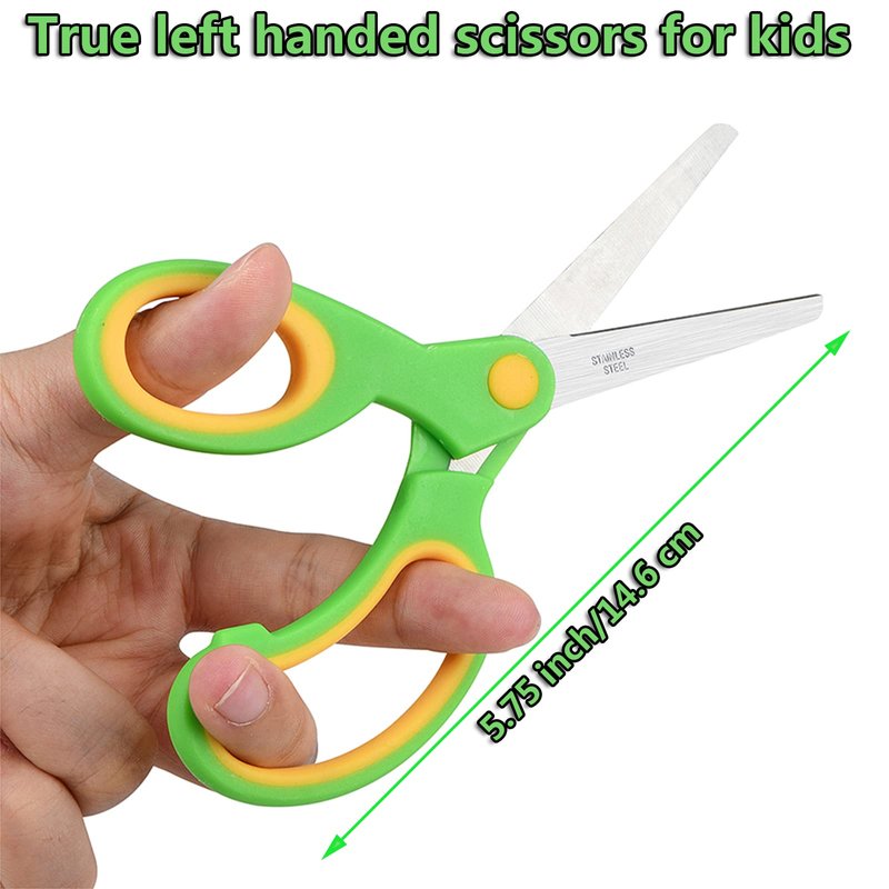 - 2-PACK(Blue): Scissors made of sturdy plastic with blunt tip stainless steel blades for left-handed kids