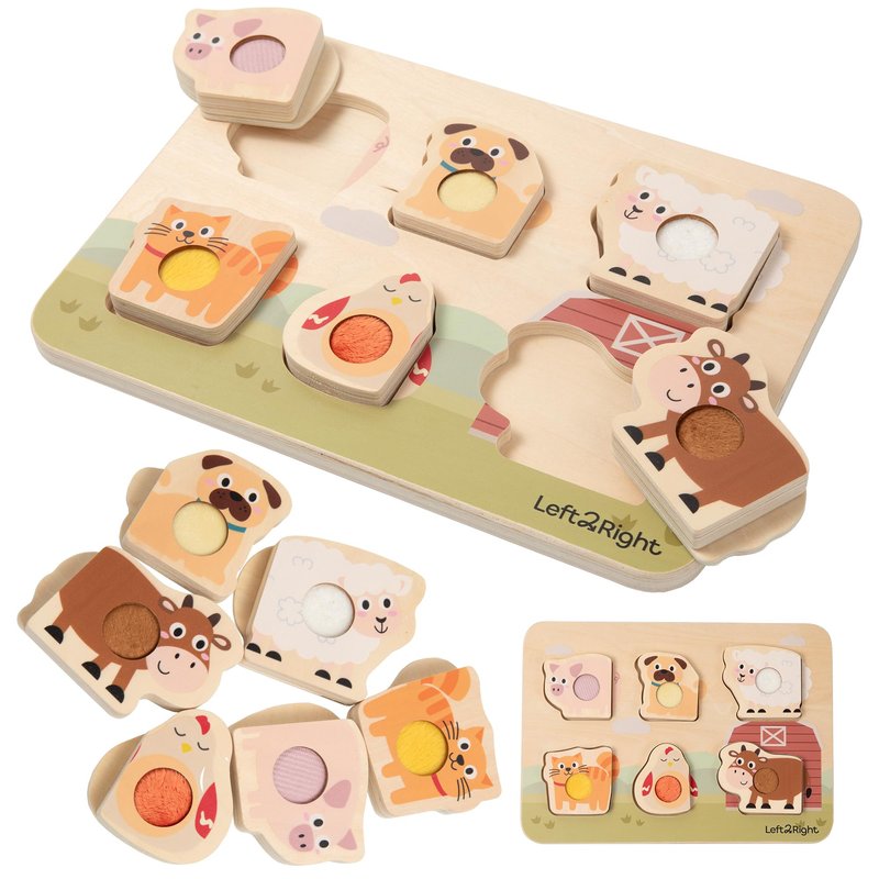 Introduce your little one to learning with the LEFT2RIGHT Wooden Puzzles for Toddlers, perfect for ages 1-4. This vibrant set of wooden puzzles for toddlers 1-3 features engaging farm animal shapes like pigs, cows, and dogs, crafted from premium, non-toxic wood for safe play. Ideal as Montessori puzzles, these pieces encourage early fine motor skills and cognitive development while enhancing shape recognition. Designed for children ages 1-3, these baby puzzles support hand-eye coordination and independent learning through hands-on play.