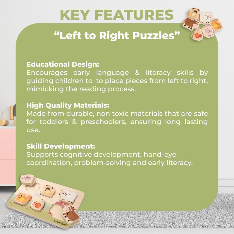 - TRUSTED EDUCATIONAL BRAND: LEFT2RIGHT is committed to empowering early learners through thoughtfully designed educational toys. We offer 1-year-old puzzles for boys, fostering literacy development. Our childrens puzzles ages 1-3 provide lasting joy and support on their educational journey.