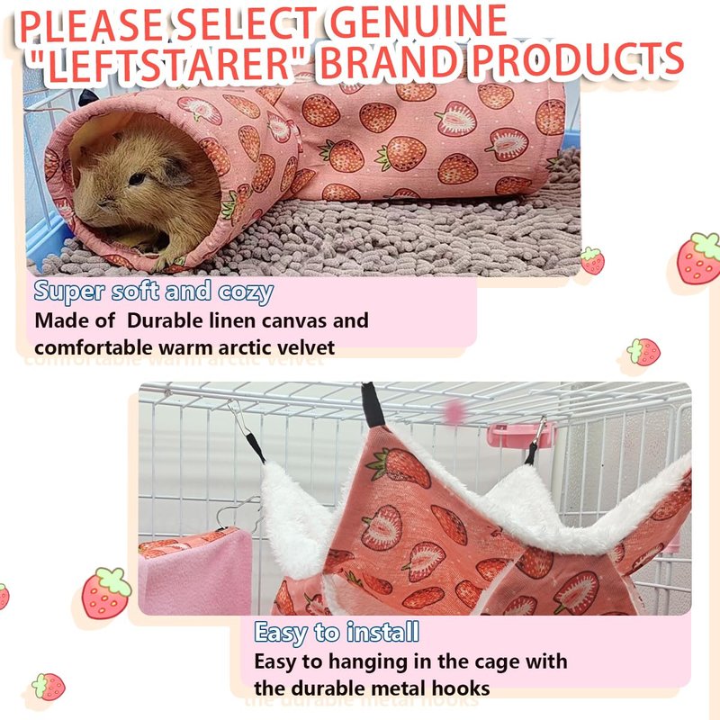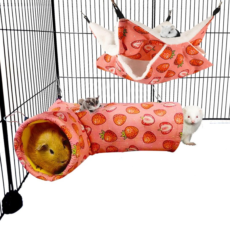 LEFTSTARER Pet Small Animal Hanging Hammock Ferret Bunkbed Cage Toy for Hamster Rat Sugar Glider Parrot Guinea Pig Hideout Play Sleep (Strawberry)