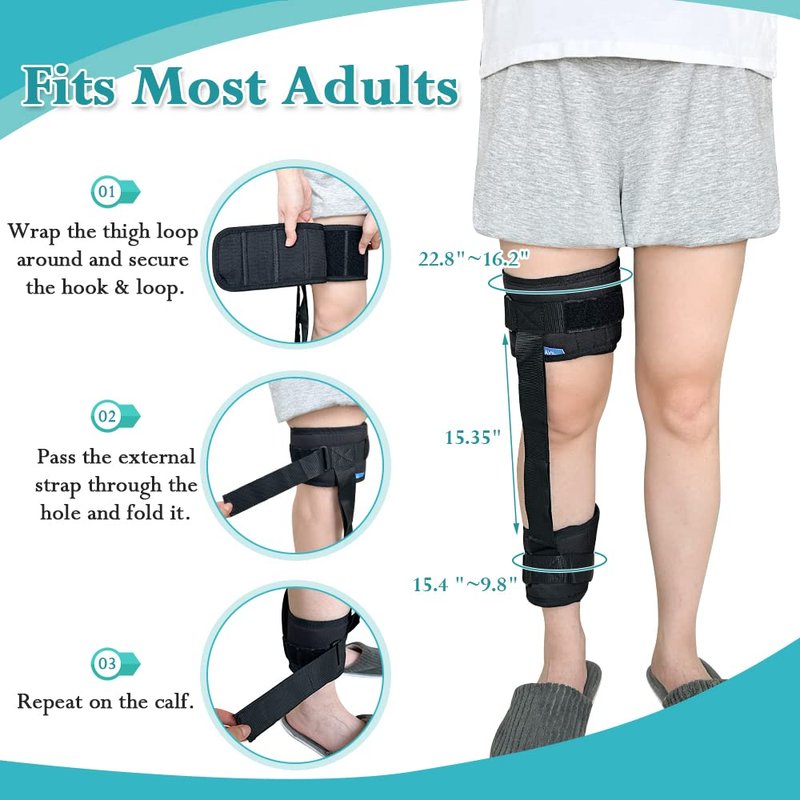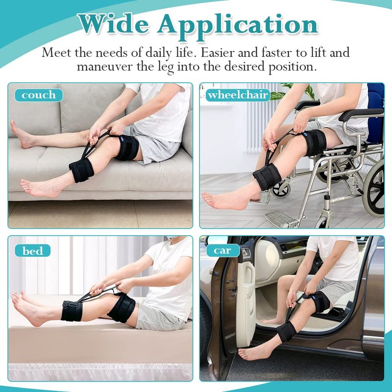 - Leg Lifter Strap - This strap comes with thigh and calf loops to easily lifting and repositioning legs, helping you move your legs in and out of bed, wheelchair, car, and couch safely. Lifting the leg can also promote effective recovery of the injured leg.