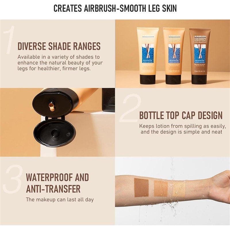 - 【Long Lasting & Waterproof】This waterproof leg makeup gives a no Transfer, waterproof and sweatproof finish on your face and body, so you won't have to worry about getting caught out in the rain or accidentally splashing water on yourself when washing your face or body.