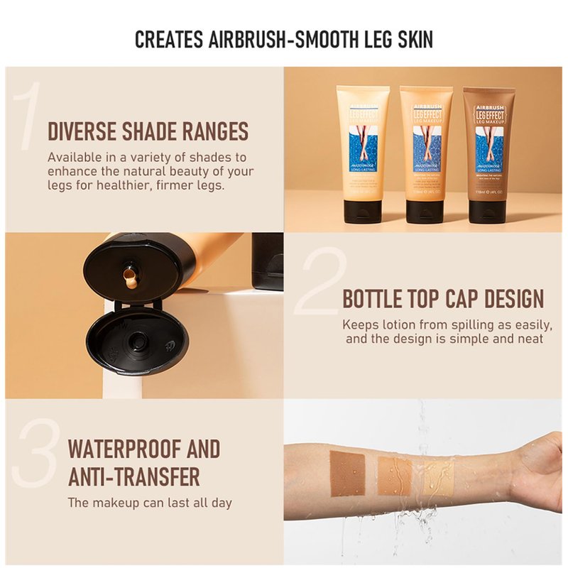 - 💃【Long Lasting & Waterproof】This waterproof leg makeup gives a no Transfer, waterproof and sweatproof finish on your face and body, so you won't have to worry about getting caught out in the rain or accidentally splashing water on yourself when washing your face or body.