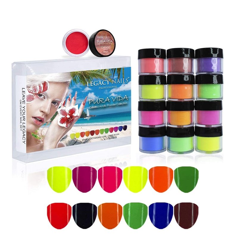 Legacy Nail Acrylic Powder Collections - 12 Colors Professional Nail Art Powder Set Manicure DIY for Dip & Acrylic Nail Extensions (Rosalinda Collection)