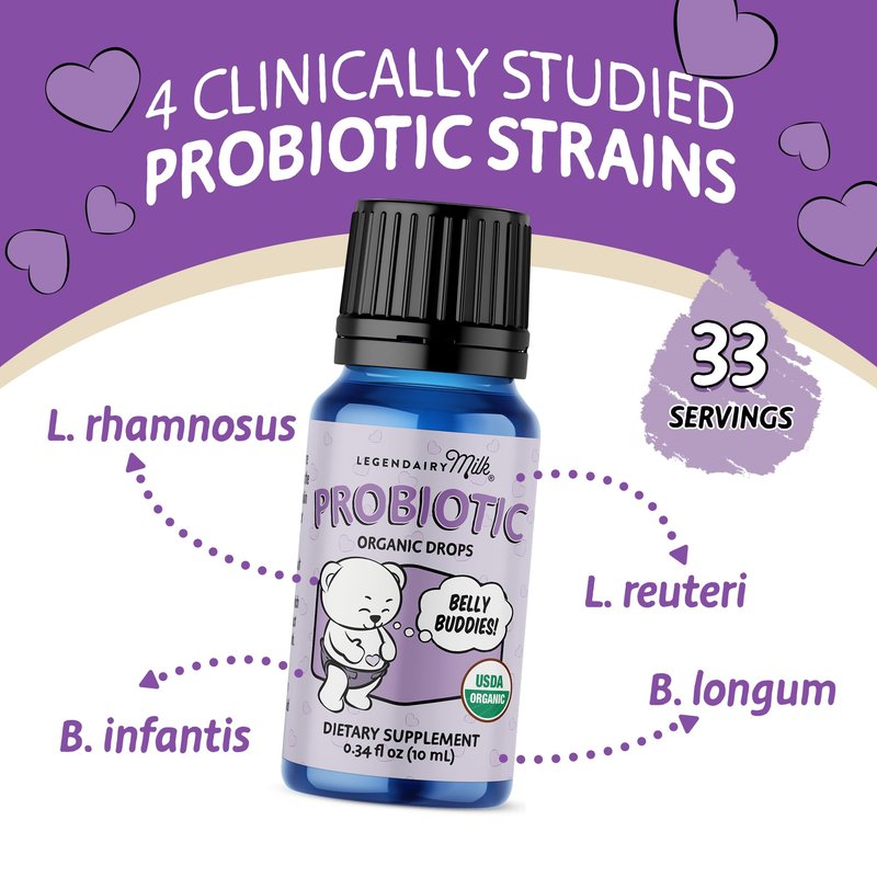 Legendairy Milk Baby Probiotic Drops Organic - Colic and Gas Drops for Newborns & Toddlers - Digestive Support, Constipation Relief - Toddler Probiotic Supports Occasional Diarrhea & Gas, 33 Servings