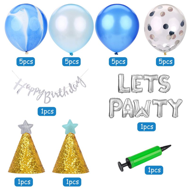 Legendog Dog Birthday Party Supplies Dog Paw Print Balloons Cat Birthday Hat Happy Birthday Banner Foil Balloons Lets Pawty Letters Balloons Decorations