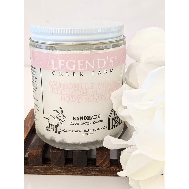 Legend's Creek Farm, Goat Milk Body Butter - Hydrating Natural Body Moisturizer with Organic Shea Butter & Grape Seed Oil - 8 Oz Purifying & Toning Whipped Body Butter (Chamomile Cherry Blossom)