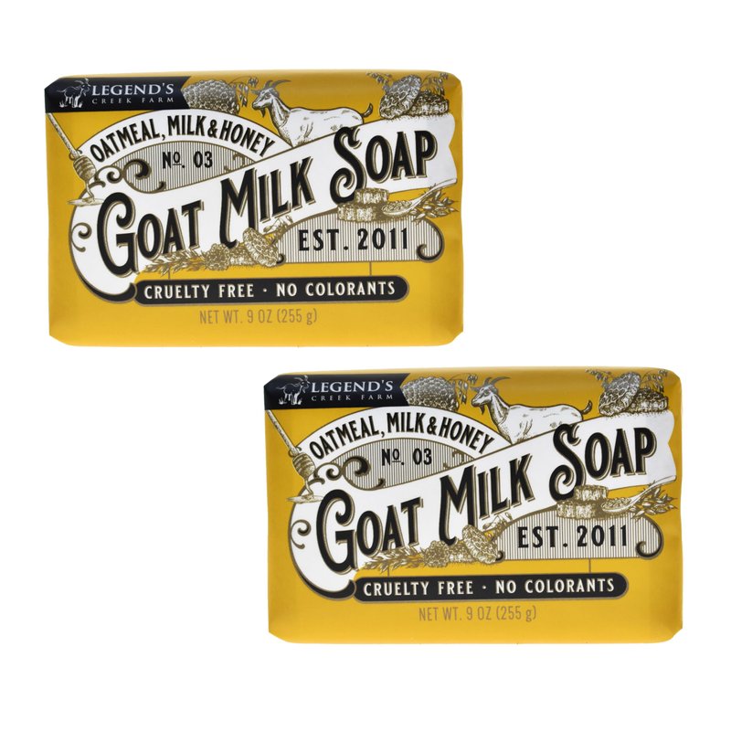 Legend's Creek Farm Goat Milk Soap - Triple Milled Moisturizing Soap Bar for Hands and Body - 9 Oz Creamy Lather, Nourishing, Natural Soap for Sensitive Skin (Oatmeal, Milk & Honey, Pack of 2)