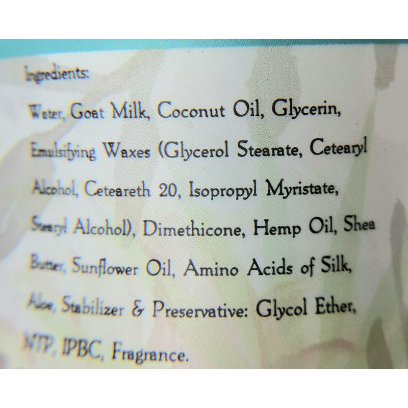 - Clean Ingredients — our goat milk lotion contains no parabens, formaldehyde, phosphates, gluten or other harmful chemicals. Along with using clean ingredients we also never test our products on animals and are Certified Cruelty Free