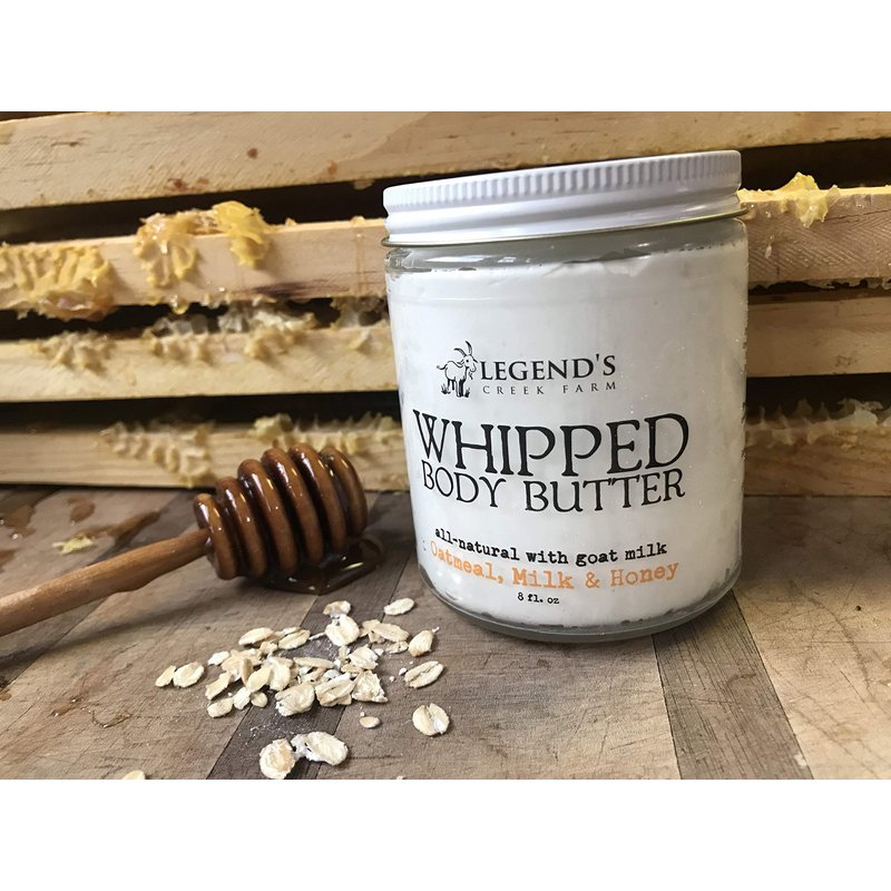 Legend's Creek Farm, Whipped Goat Milk Body Butter, Hydrating Moisturizer with Organic Shea Butter & Grape Seed Oil, Purifying & Toning, Handmade in USA, 8 Oz Jar (Oatmeal, Milk & Honey B.B.)