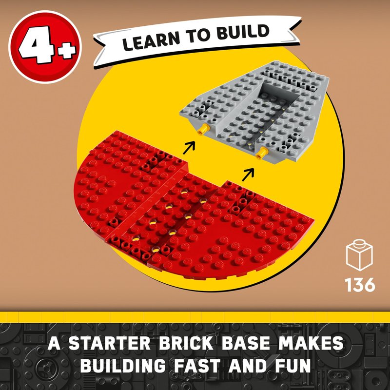 - EASY TO BUILD - The Crimson Firehawk spaceship features a beginner's base that makes building easier, as well as a cockpit with room for all 3 characters; Speeder Bike can be stowed away at the back of the ship