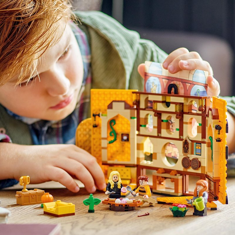 - With this LEGO Harry Potter Hufflepuff dorm banner building set, kids can show off their loyalty to their house in Hogwarts with an detailed living room