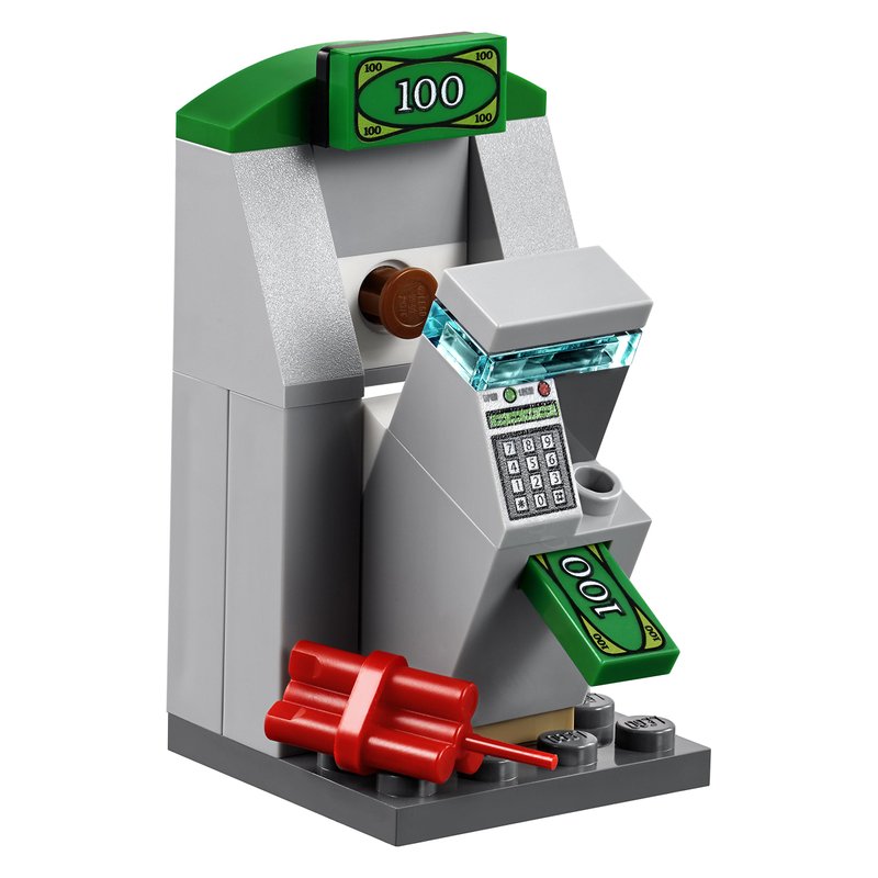 - Features a police ATV with room for the dog figure in the back,a also includes a wall section with ATM breakout function, opening door on the back and space to hold money bills