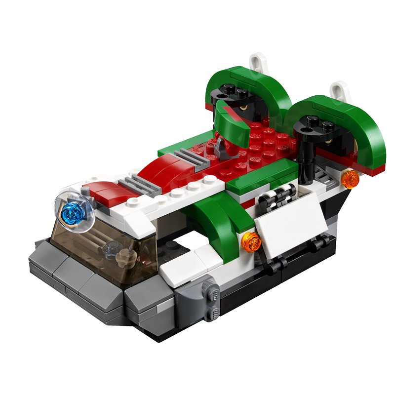 - Off roader can accommodate a minifigure (not included); 3-in-1 model: rebuilds into a helicopter or a hovercraft