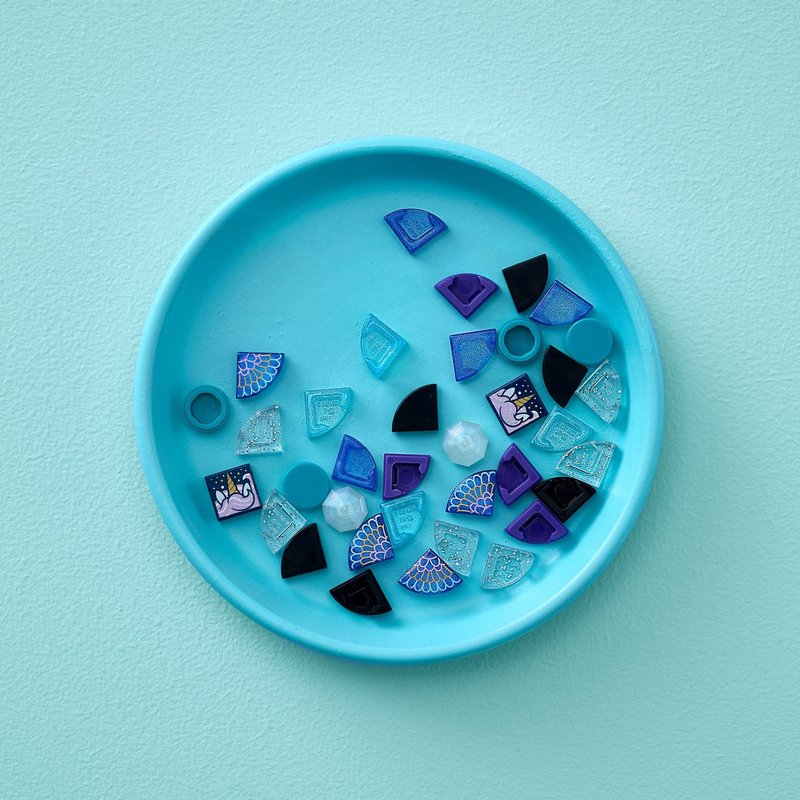 - Then use the metallic unicorn horn and opalescent wing-decorated tiles, plus the ‘diamond’ elements, to add special touches with this creative toy