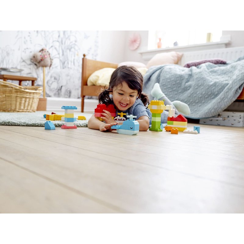 - This building toys set for toddlers Ages 1.5 - 3 years old includes 80 colorful LEGO DUPLO bricks to build a toy house, ice cream, whale and more