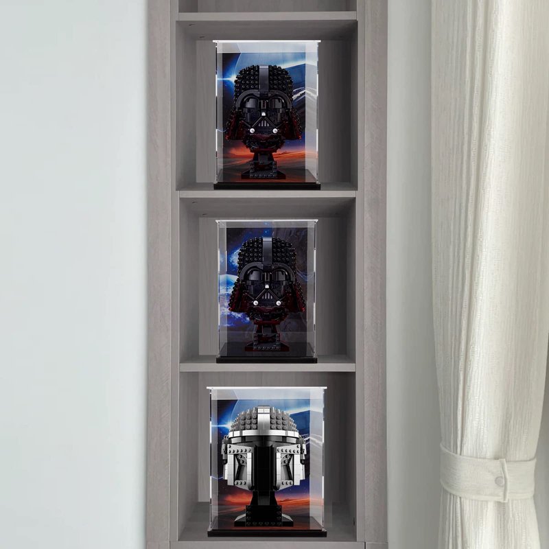 Lego Helmet Display case,HD Inkjet Background for Lego 75304 Darth Vader Helmet Model Set,Lego Display Box for Venom Helmet 76187,Lego Batman Cowl 76182,Helmet 75277 and 75276 75305 75327 75343.