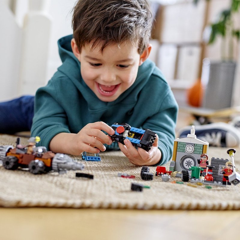 - Build a bank vault with breakaway door and a street scene with wall and buildable streetlamp, plus an Incredibile vehicle and Tunneler machine with spinning drill bits