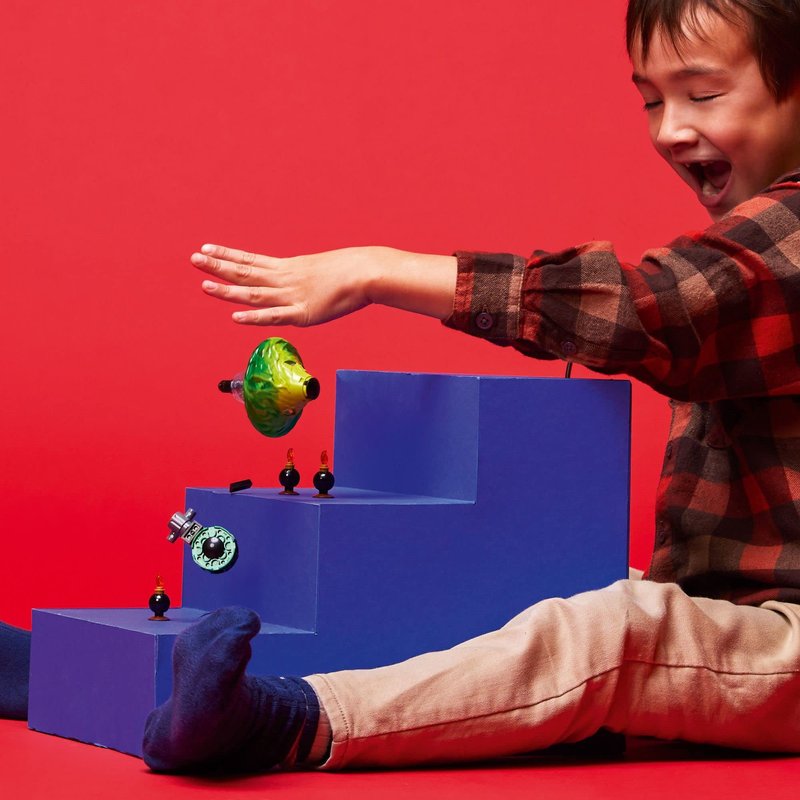 - Ninja action toy – Kids can place Lloyd inside the spinning toy, pull the rip cord and watch as he rotates. They can test his balance by making him dodge past 3 burning bombs