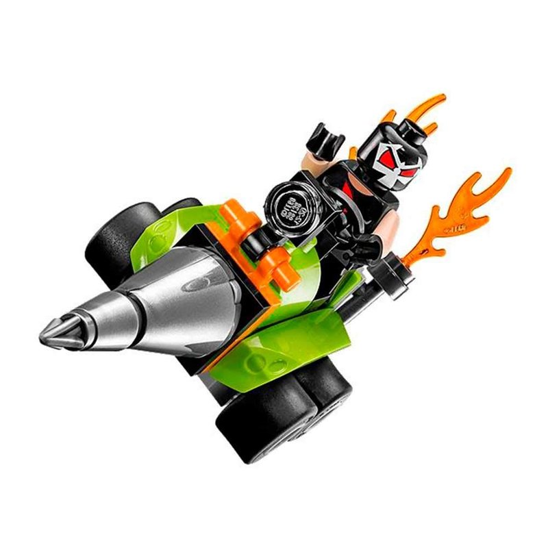 - Includes 2 minifigures with mini legs: Robin and his grapple-hook gun and Bane with his dynamite element