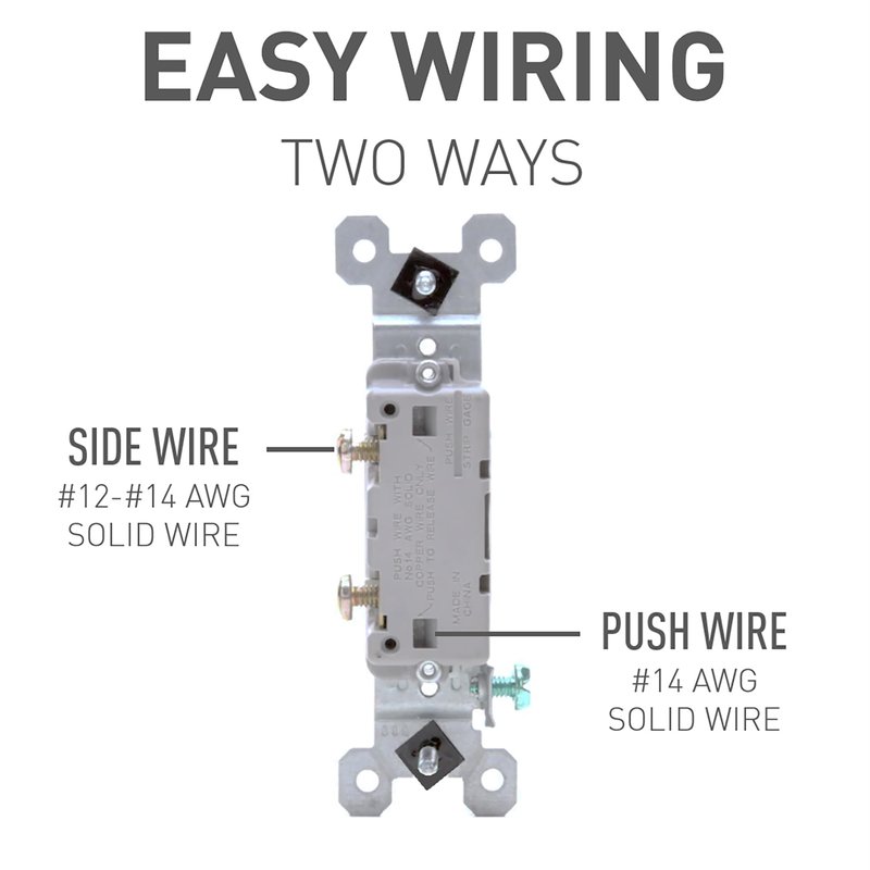 - Side wire #12 and #14 AWG. Push wire #14 AWG