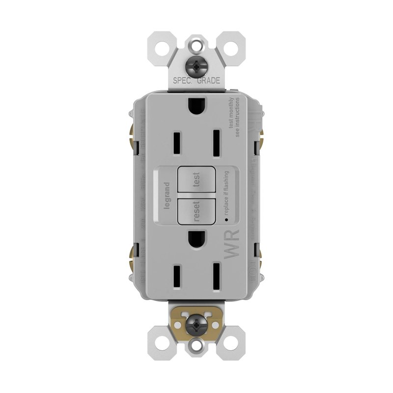 Legrand radiant 1597TRWRGRYCCD4 15 Amp Outdoor GFCI Self Test Tamper Resistant Weather Resistant Decorator Duplex Outlet, Gray (1 Count)
