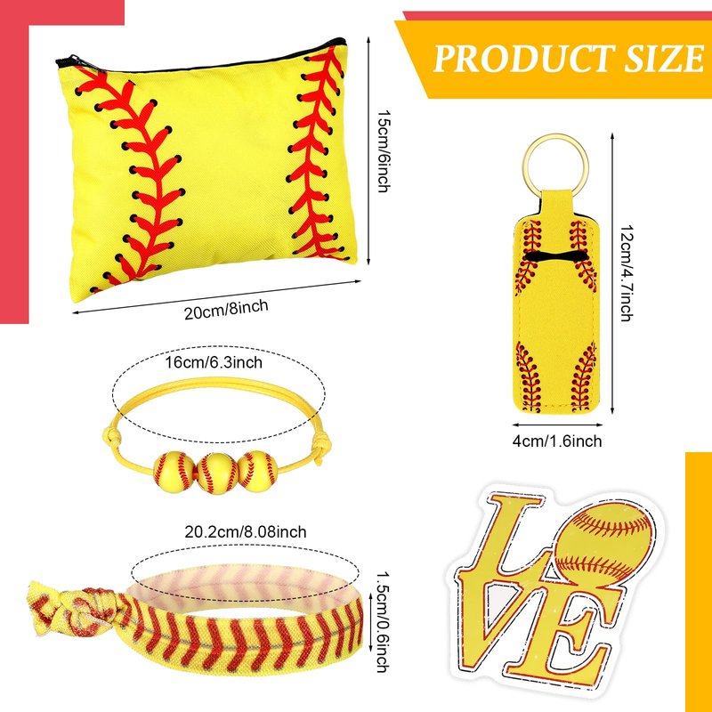 LEIFIDE 148 Pcs Softball Gift for Girls Softball Party Favors Softball Makeup Bag Softball Bracelet Keychain Stickers Hair Ties for Sport Birthday Decoration