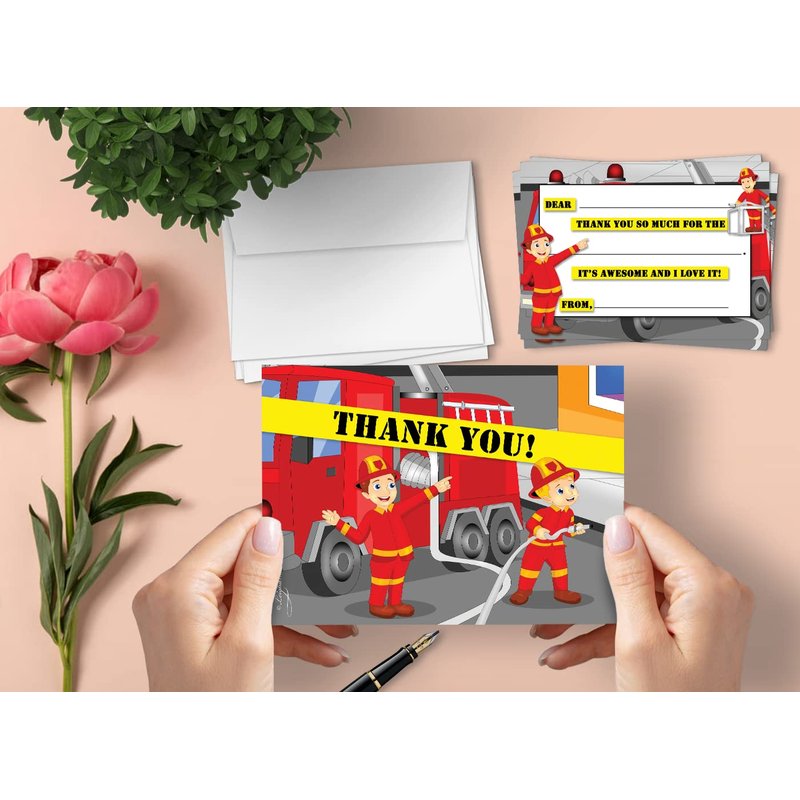 Leigha Marina Fireman Thank You Cards for Kids, 20 Notes & 20 Envelopes