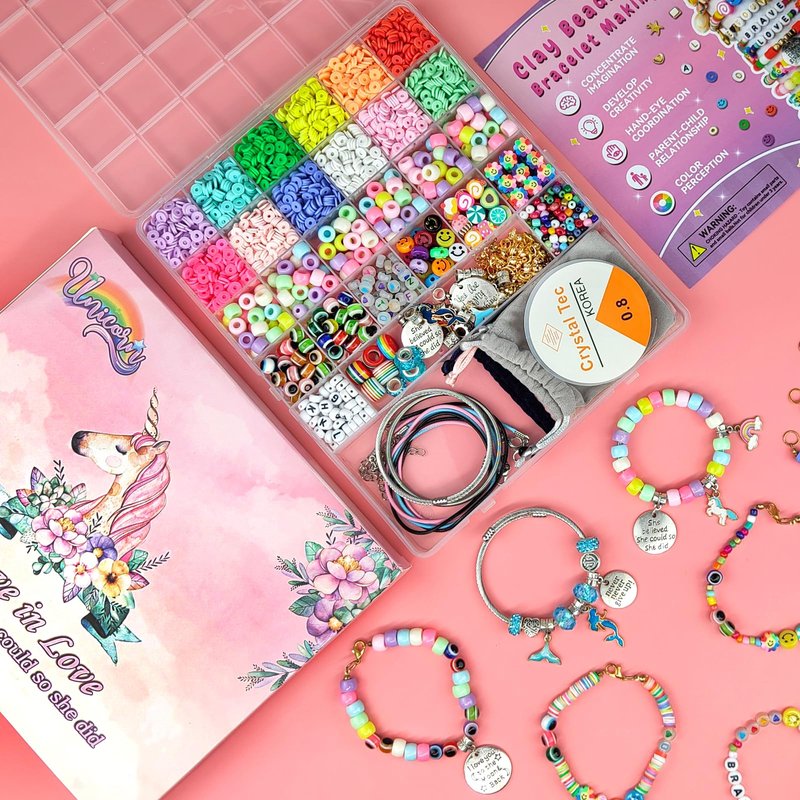 Looking for the ideal Christmas or birthday gift for your creative and crafty daughter, niece, or friend? Look no further than our bracelet making kit for girls! Designed for girls ages 6-12, this kit includes everything needed to create beautiful and unique bracelets, perfect for celebrating birthdays, friendship, or any occasion. With a variety of beads, charms, and string included, this kit is perfect for arts and crafts for kids and crafts for girls ages 6-12. Let your child's creativity shine with this DIY jewelry making kit, and give the gift of fun and imagination. Ideal for Christmas gifts for girls or birthday gifts for girls, this charm bracelet making kit is sure to provide hours of entertainment and joy. So why wait? Get your bracelet making kit today and start creating!