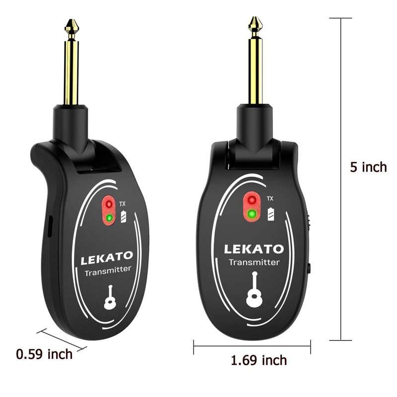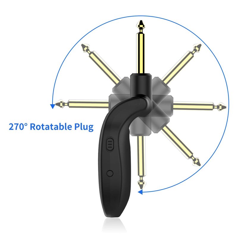 - 🎸 Flexible Adjustment Design : 270° Rotatable plug, available for instruments with input jack in different positions. Small in size and light in weight for portability. UHF original sound transmission, anti-interference and ultra-short delay, giving you the best music sound.