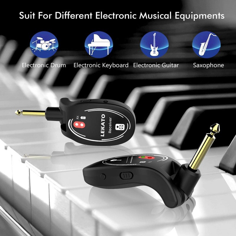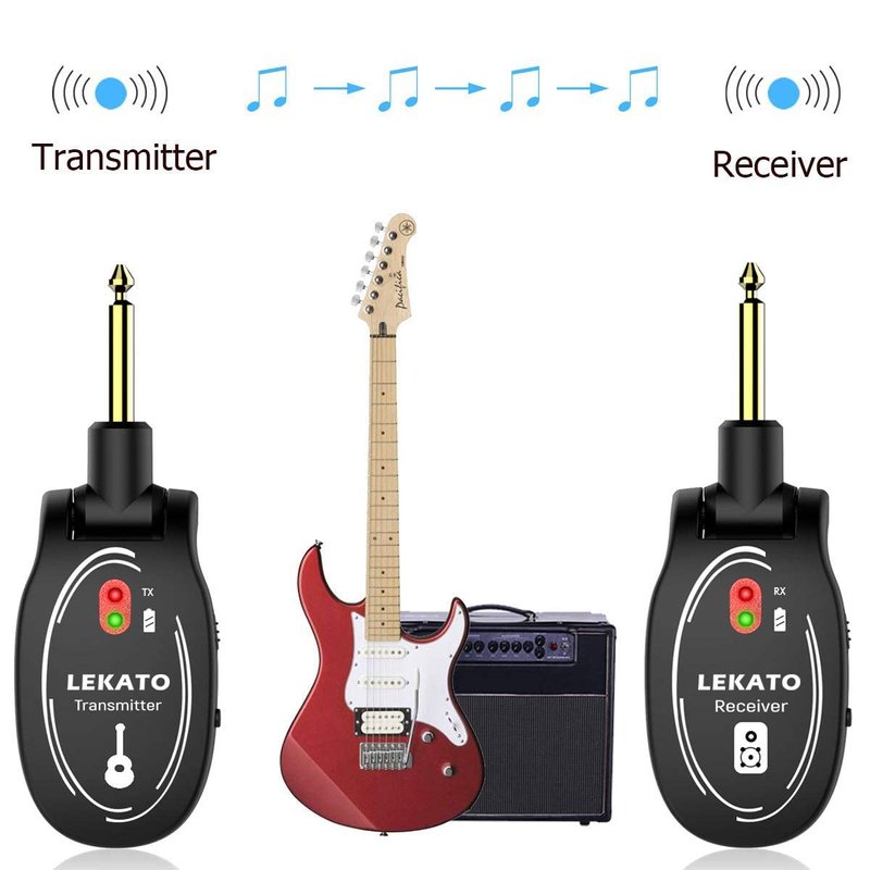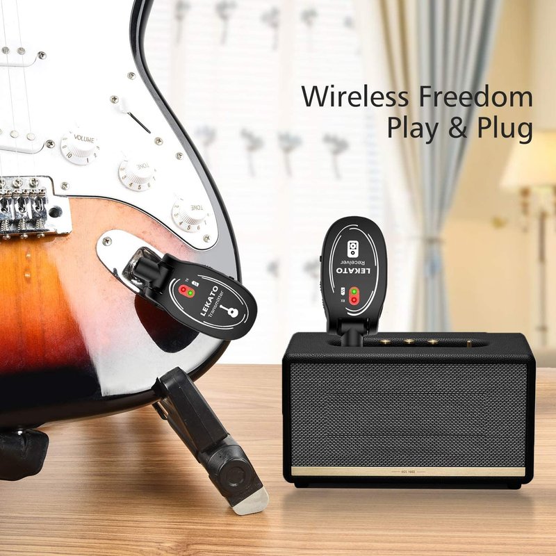 LEKATO Wireless Guitar System UHF Wireless Transmitter Receiver for Electric Guitar Bass, Low Latency Guitar Wireless System,Rechargeable